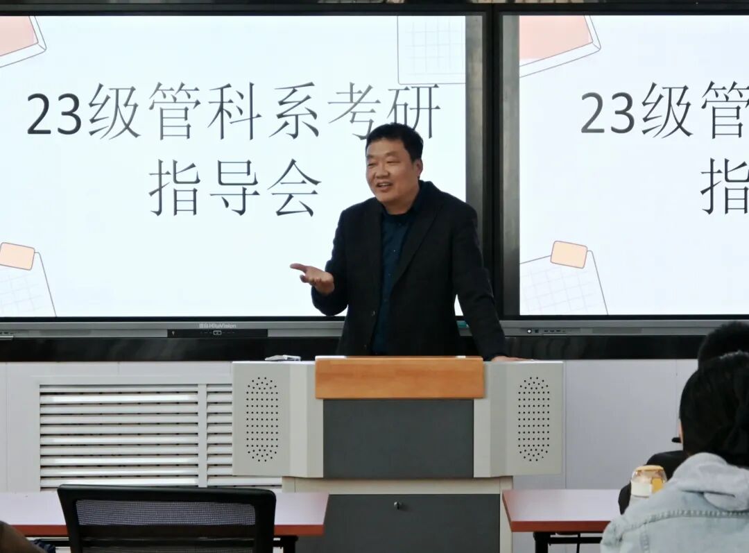 为帮助商学院管科系2023级有升学意向的同学,明晰考研路径、科学做好备考规划,近日,管科系2023级辅导员李鹏老师特邀管科系主任张桂涛老师与管科系副主任王栋老师,共同举办2023级考研专题指导会。现场吸引了众多有升学计划的同学前来参加,学习氛围浓厚。