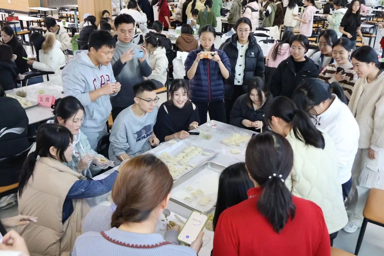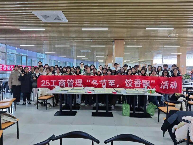 冬至大如年,人间小团圆。在冬至来临之际,为弘扬中华优秀传统文化,丰富校园生活,增进同学们之间的感情,2025年12月21日下午,商学院2025级工商管理专业“冬节至,饺香飘”活动在水上餐厅二楼顺利举行,辅导员马玮老师和同学们齐聚一堂,共同体验传统节日的魅力。不仅有冬至吃饺子的暖身,更有大家庭凑在一起的暖心!
