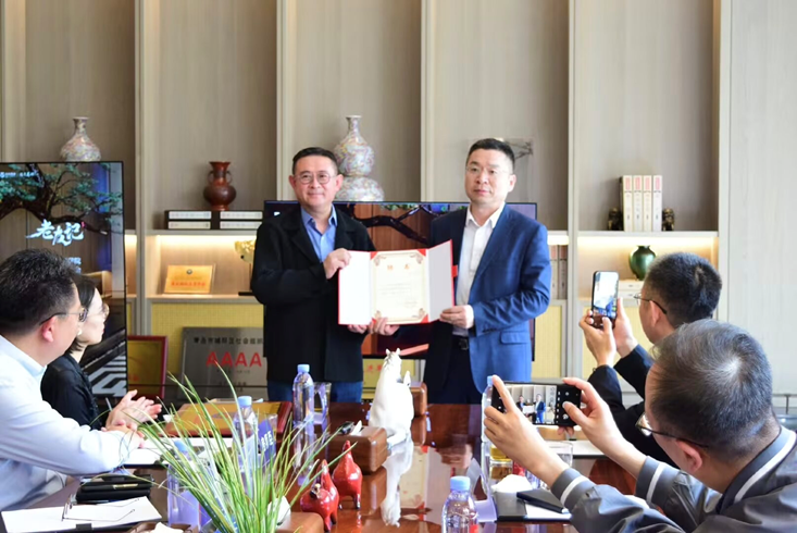 在战略合作仪式环节,学院为青特置业授予教学实践基地牌匾,并为青特置业副总经理王志庆颁发MBA导师聘书。此次授牌聘任,标志着双方合作迈入规范化、长效化发展新阶段,为后续实践教学、课题研究、人才共育搭建起长效合作平台。