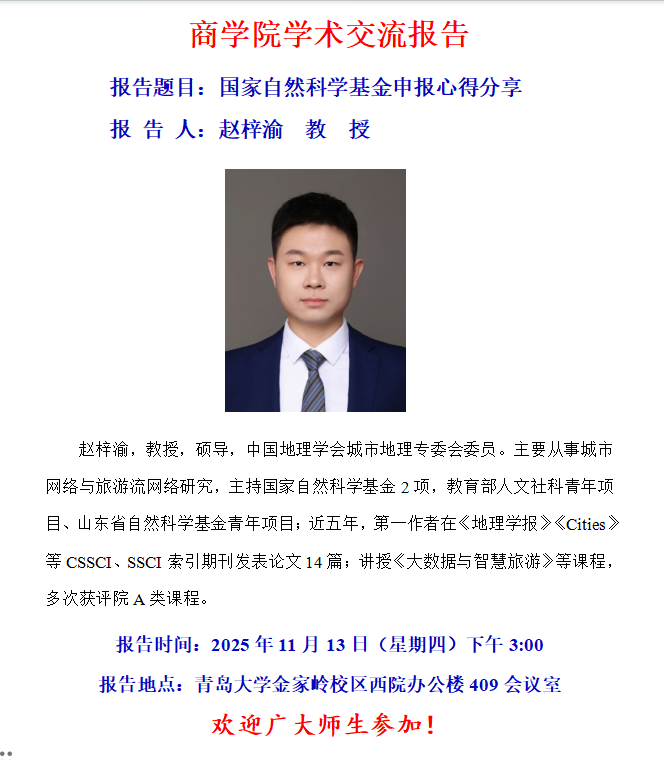 青岛大学商学院 地址:青岛市宁夏路308号 邮编:266071