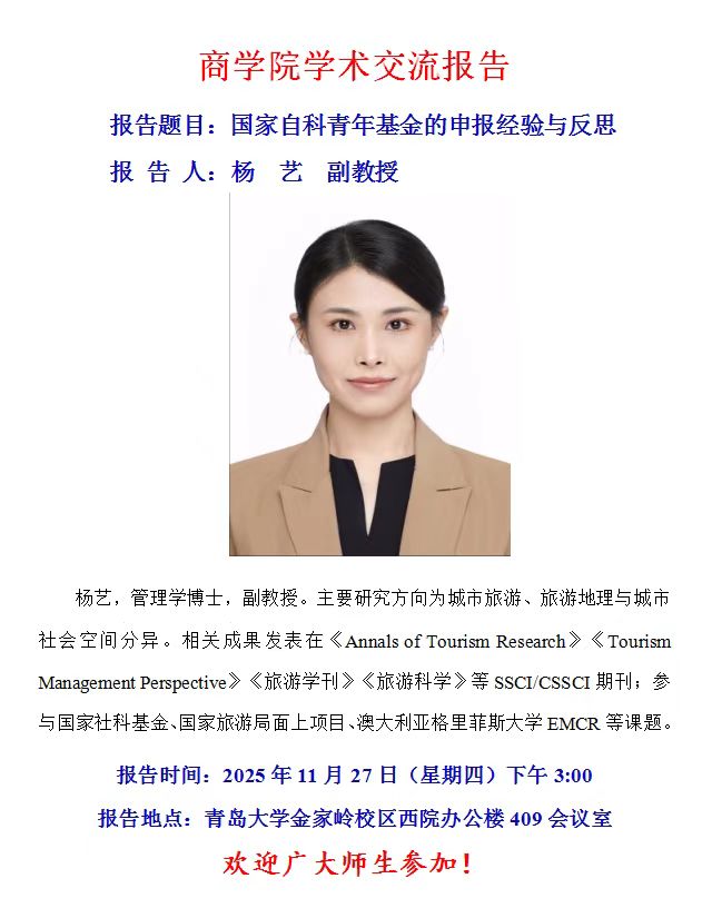 青岛大学商学院 地址:青岛市宁夏路308号 邮编:266071