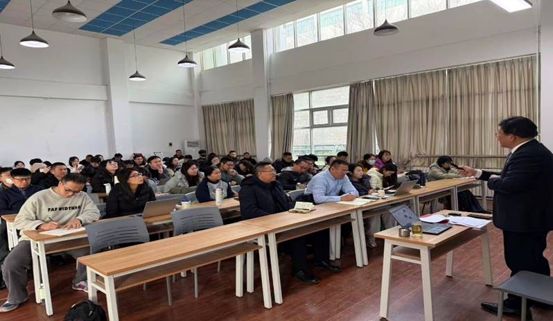 王鲁刚教授从人生追求的本质切入,提出人生追求可分为物质、精神、灵魂三个层次,并以吉训明、霸王茶姬创始人张俊杰等实干者为例,印证了 “努力可破局、发展无止境” 的人生真理,引发同学们强烈共鸣。