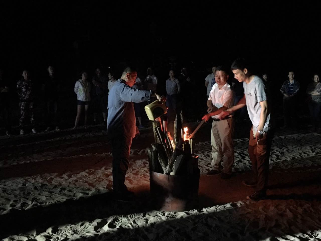 首先进行的是“篝火晚会”。全班同学围成一个圈,进行了热身活动,由王庆金教授点燃了篝火,开启了晚会序幕。全班分成四组,进行了“找身边物品”和“模特大赛”等活动,并在欢乐的氛围中结束。