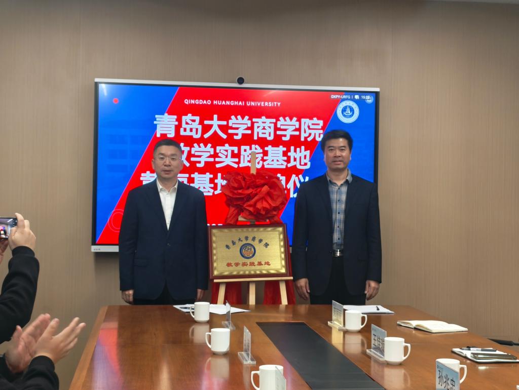 仪式上,双方代表共同为“青岛大学商学院教学实践基地黄海学院基地”揭牌,标志着两校合作正式落地。该基地旨在搭建校企协同育人平台,通过整合高校理论资源与企业实践优势,推动人才培养与行业需求精准对接,为区域经济发展输送高素质应用型人才。