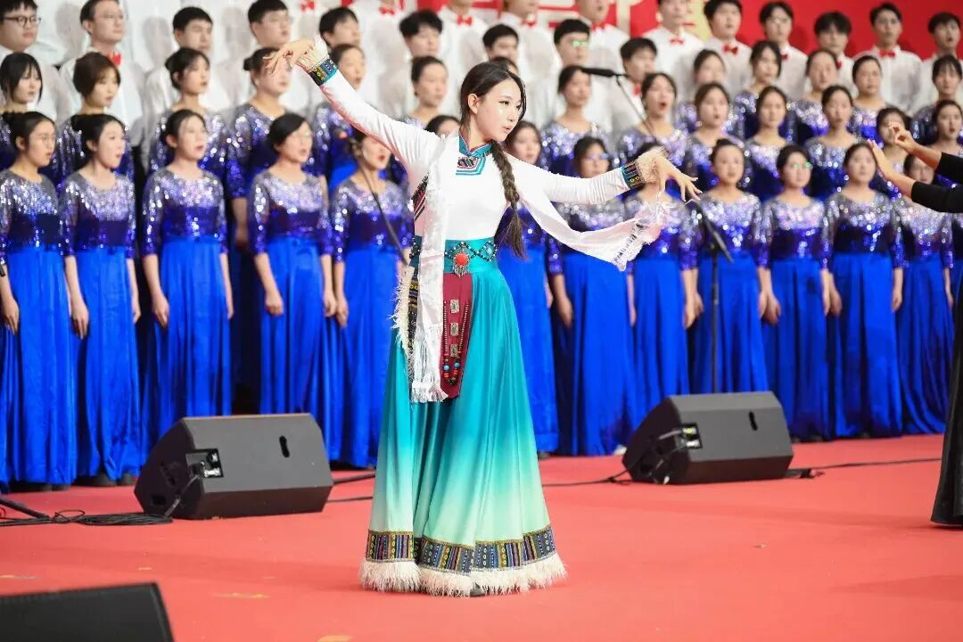 比赛前夕,全体成员调整状态,努力缓解紧张情绪。当盛大舞台的灯光亮起,当动人歌声的旋律响起,同学们以最好的状态纵情歌唱,师生协力同心,默契无间。演出结束,美好而精彩的歌声止息,迎来的,是持久而热烈的掌声。