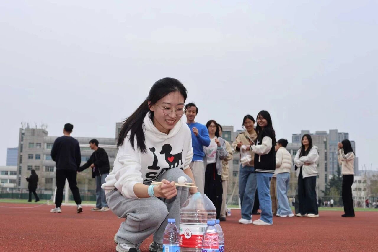2026年4月16日下午两点,金家岭校区西院操场迎来了一场属于商学院研究生的趣味运动会。五个创意项目轮番登场,各队依次上阵,在欢声笑语中展开了一场别开生面的速度与默契比拼。加油声此起彼伏,春日操场化作一片活力四射的竞技场。