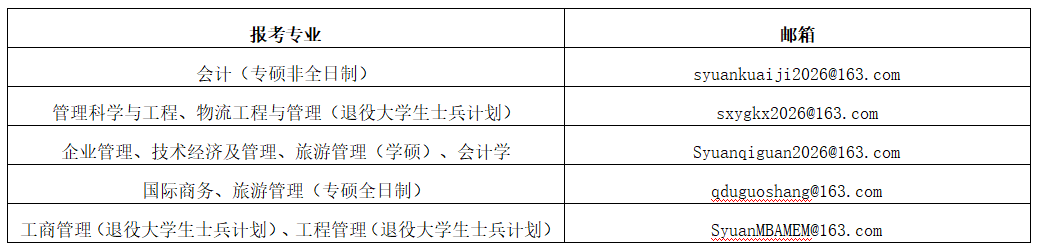 各位考生根据报考专业将电子版材料发送至指定邮箱: